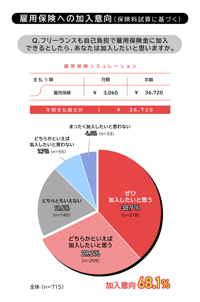 厚生労働省 (2024) 『フリーランス・ギグワーカーの社会保険の適用の在り方について』によると、雇用保険への加入を希望する個人事業主が多数いることが分かる