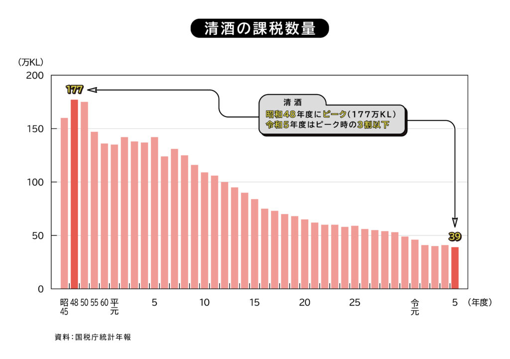 1.出荷量はピークの4分の1、酒蔵も半減│文化財に近い産業が、静かに痩せ続けている。